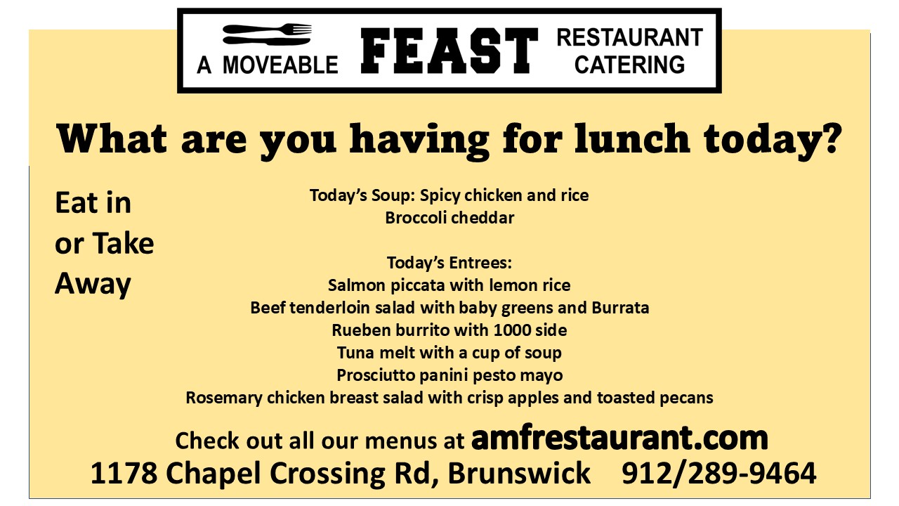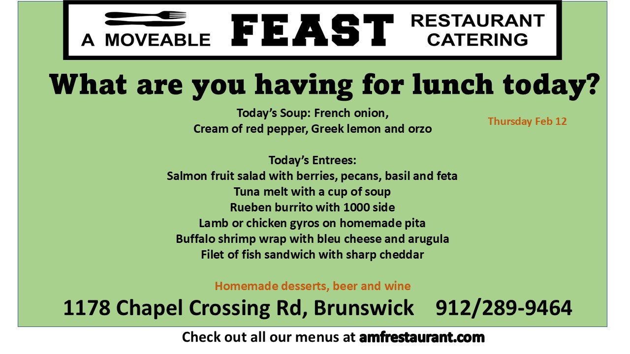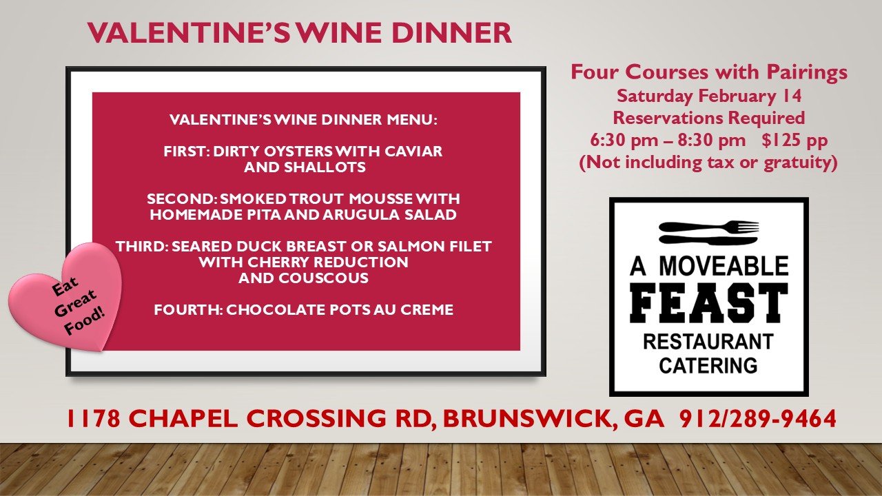Tanya Sergey is the Chef and Owner of A Moveable Feast Restaurant. She was the former Chef and Owner of Gourmet to You, by Tanya, and The Family Chef, which she operated on St. Simons until her family relocated to Maryland.